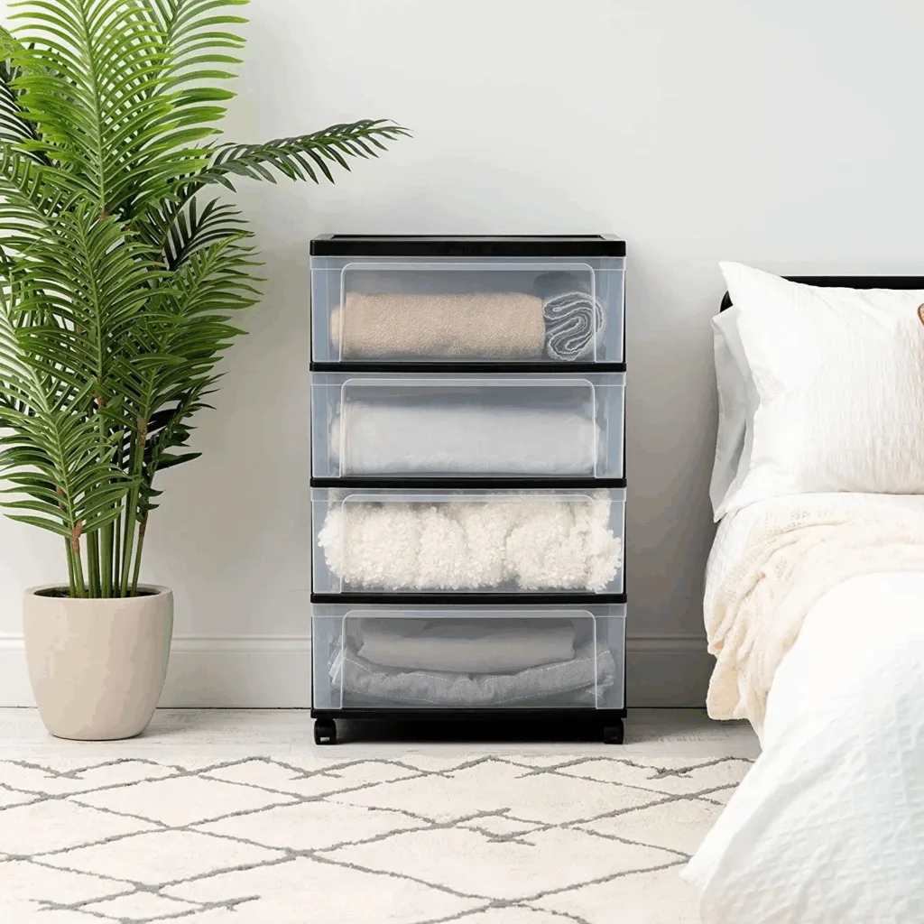Đây là lựa chọn ưu tiên cho các kho hàng thời trang và khu vực lưu trữ đồ sạch trong khách sạn. Phần nắp đậy kín khít giúp ngăn chặn bụi bẩn, côn trùng và hơi ẩm xâm nhập.