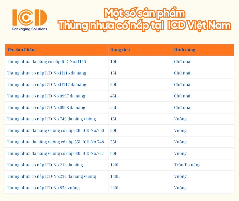 Danh Sách Thùng Nhựa Có Nắp Đa Năng Của ICD Việt Nam