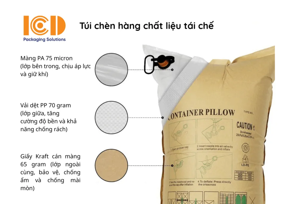 - Bài viết này cung cấp thông số kỹ thuật chuyên sâu cho dòng Túi khí chèn hàng Giấy Kraft (Dunnage Air Bag) của ICD Việt Nam, được xây dựng dựa trên sơ đồ cấu tạo và vận hành thực tế.