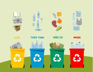 Hướng dẫn phân loại rác: Chuẩn bị thùng rác nhựa cho mỗi loại, thu gom và phân loại ngay khi phát sinh, xử lý phù hợp từng nhóm.