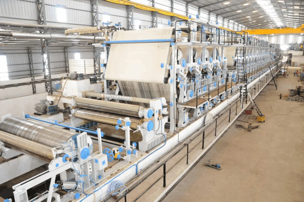 Bột giấy sau khi tinh chế được đưa lên Máy xeo giấy để tạo thành giấy thành phẩm.
